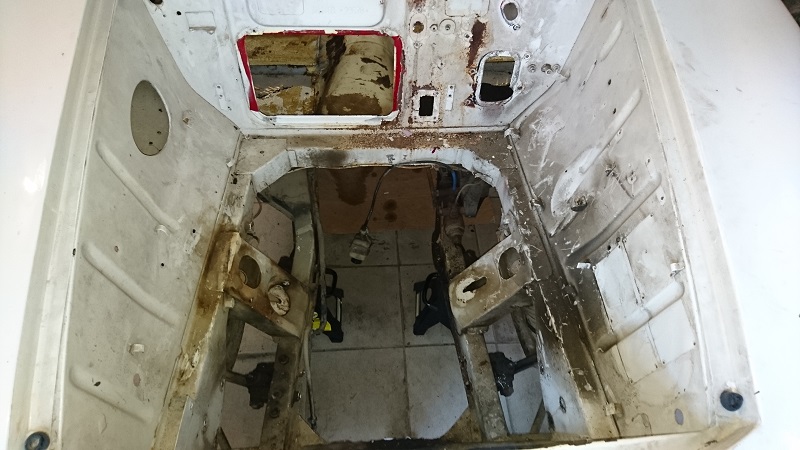 So.. die Karrosse ist demontiert. Türen wurden alle entfernt, Heckdeckel und Motorhaube ebenfalls von allen Kleinteilen befreit.