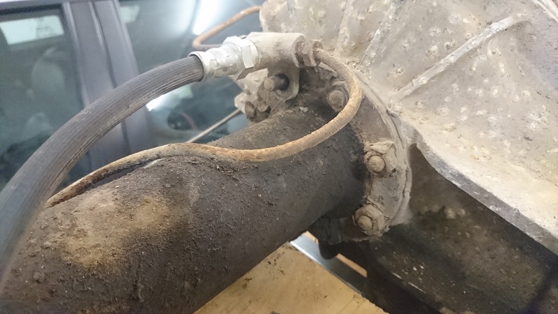 Vorerst wurden Bremsleitungen und Handbremsseil entfernt. Bremstrommel klemmte auch etwas.